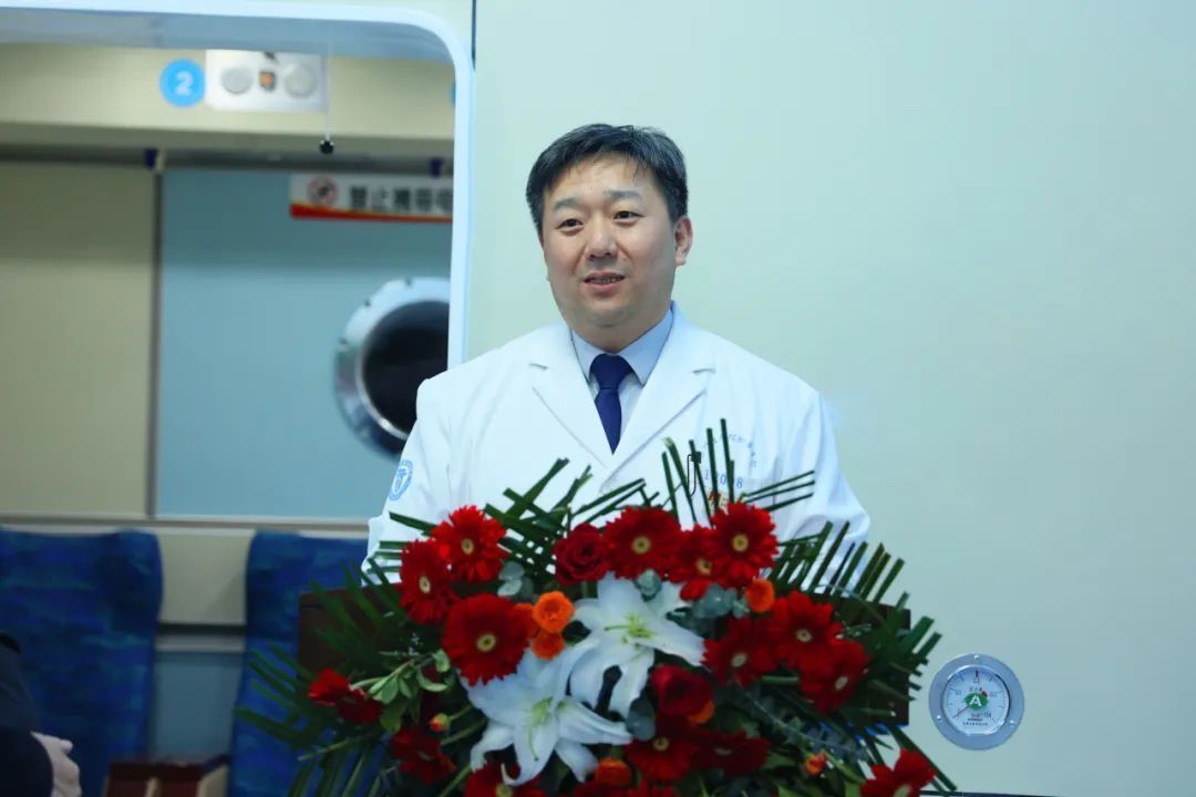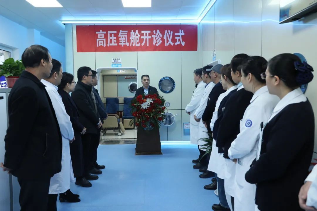 王玉玖在讲话中表示,高压氧舱升级后正式开诊,是医院提高服务水平、提升相关学科诊疗能力、惠及百姓健康福祉的一项重要举措。他希望,康复医学科团队及相关科室,要凝心聚力、笃行实干,充分发挥高压氧舱的独特作用,进一步提升医院在急危重症救治、康复等方面的综合实力,将舒适的就诊环境、精良的技术、优质的服务奉献给人民群众,将高压氧治疗打造成为医院的新名片、新品牌,共同推动医院高质量发展,助力健康中国建设。