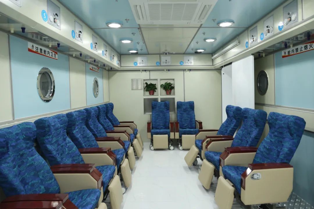 滨医附院高压氧诊疗中心采用了全新“升舱”的新一代高端方舱设计,是山东省规模第一、全国第五的高压氧方舱,可同时容纳46人治疗。滨医附院高压氧舱的“五舱十一门式”创新结构,配备治疗舱、过渡舱、抢救舱等多功能区域,担架、轮椅及平车均可自由进出,极大提升了诊疗的便捷性与安全性。舱内搭载多功能吸氧医疗模块,每组模块均集成常规吸氧、雾化吸氧、一级吸氧、负压吸引及应急呼叫五大功能,并配有呼吸机、监护仪等接口,充分满足不同患者的治疗需求,此外,舱室采用全新设计理念,优化空间布局,显著提升了空间利用率。操作台配备计算机自动化操作与安全监测系统、全方位视频监控系统及双向通信对讲系统,进一步保障了诊疗过程的安全性与高效性。